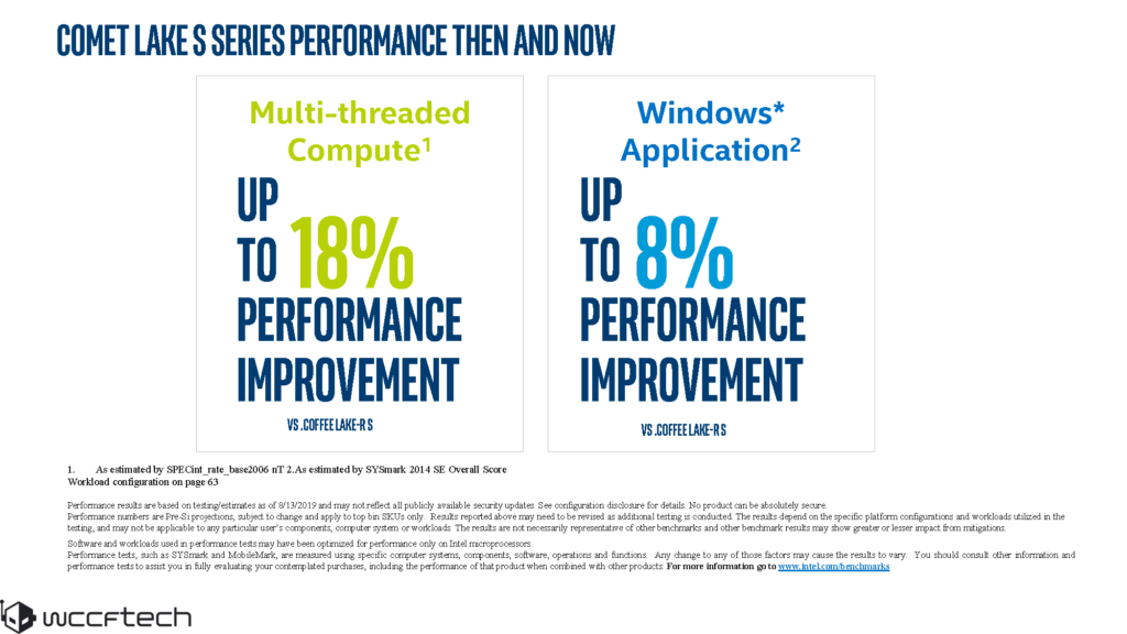 Intel claims the 10th Gen Comet Lake series will deliver an 18% performance improvement in multi-threaded compute workloads compared to 9th Generation processors and an 8% generational improvement over 9th Gen parts in general windows workloads.