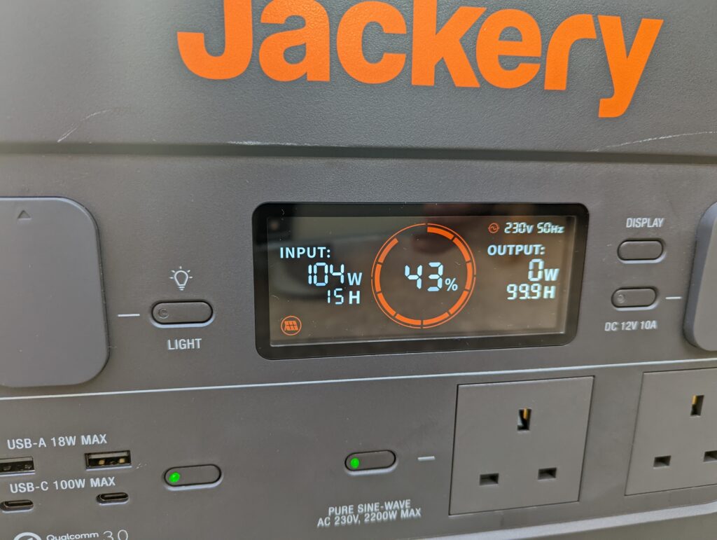 There are only two 3-pin UK plug sockets on this, that’s the same as the Explorer 1000 I previously reviewed, and I would say it is a bit less than I would like. The EcoFlow DELTA 2 has four sockets. It doesn’t matter too much; you can use extension leads. You just need to stay within the power limits.