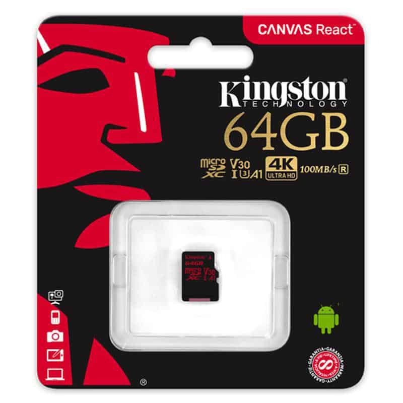 The Canvas React cards are all rated at 100MB/s Read, 80MB/s Write and it is rated as UHS-I (U3) Class 10. The model I am reviewing is the 64GB MicroSD, and you can get up to 128GB in this format.