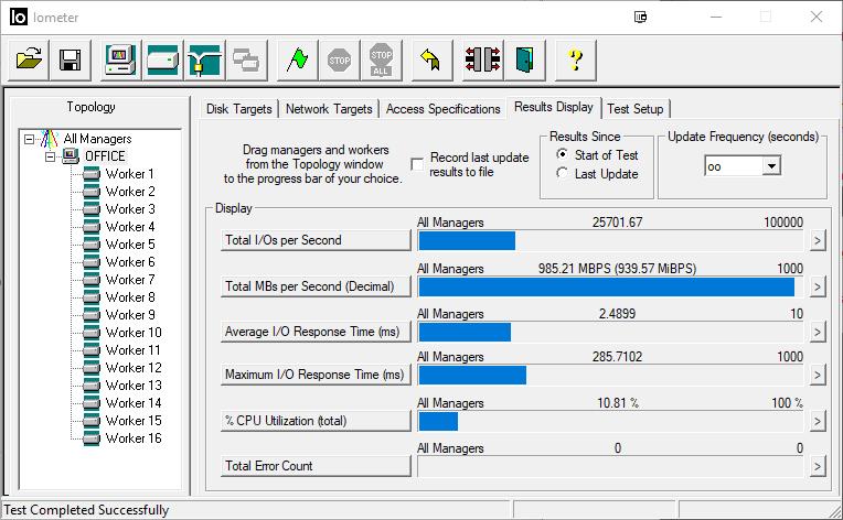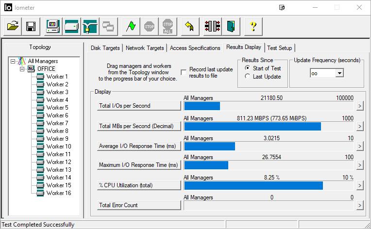 IOPs play an important factor in drive dependant on usage. The figures Kingston quote are based on IOMETER Random 4k Random Read/Write is based on 8GB partition. During my testing, using the all in one access specification, which covers everything from 512B to 256KiB with a mixture of read and writes, I achieved 21,189 I/O per second. Similarly, the KC250 has 375,000/300,000 IOPS, but when doing the all in one test, this achieves 25,701 I/O per second
