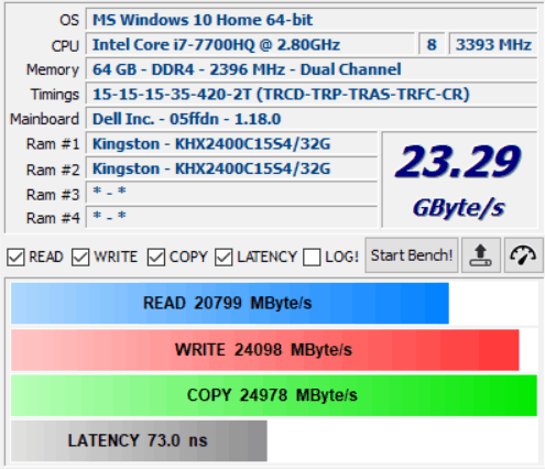 My XPS was already running on 16GB 2400MHz Ram so there are no massive performance gains to be had, apart from the benefits increased capacities has to offer.