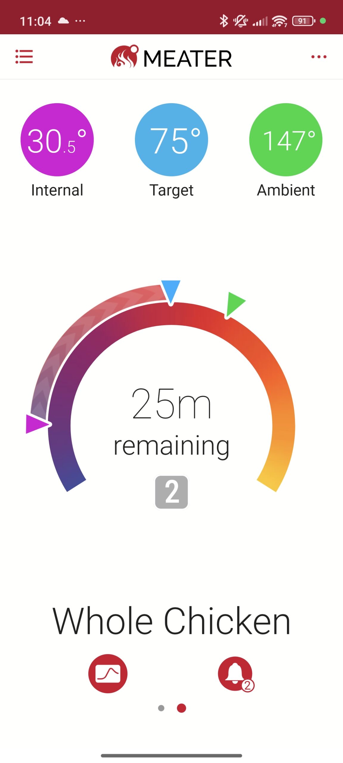 - Your meat is approaching target temperature