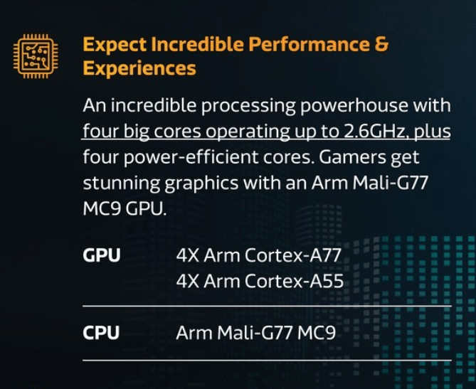 Again, the MediaTek Dimensity 1000 will dominate, this features a superior Mali G77 GPU and considerably more cores with a total of 11 available to it. We don’t know the frequencies of this yet though.