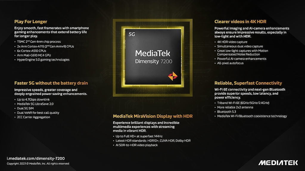 Additional features of the Dimensity 7200 include: