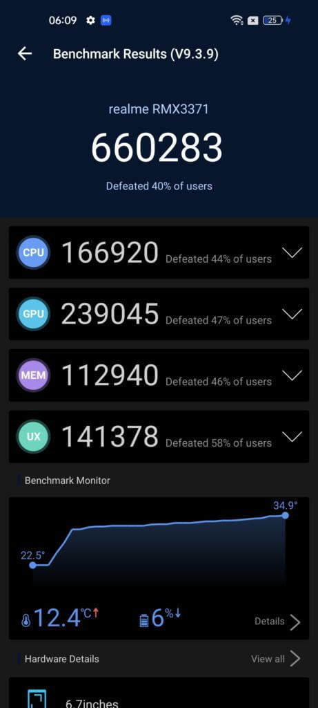 In the case of Realme, there is always a noticeable dip in performance after a few minutes, I guess the logic here is that the underlying firmware identifies prolonged low-intensity tasks and downclocks the CPU to favour battery.