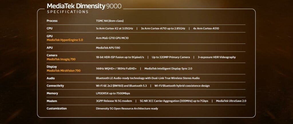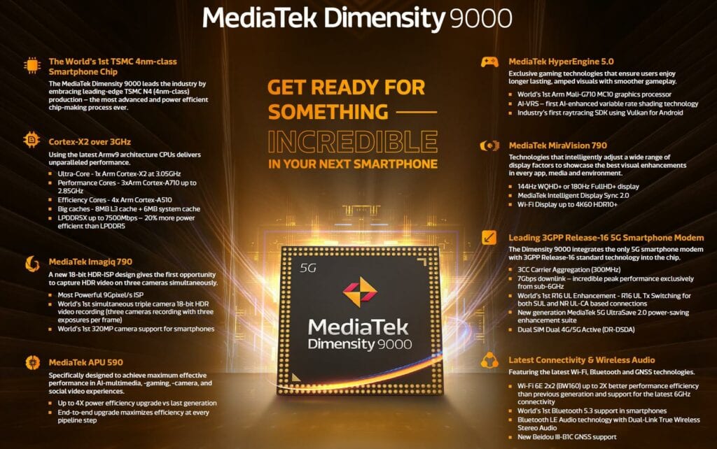 Key features of MediaTek Dimensity 9000 include: