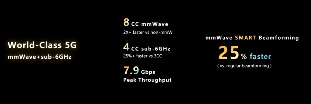 As for 5G connectivity, the chipset integrates an advanced, built-in 5G modem with AI for faster network searching, 5G connection recovery out of dead zones, and other intelligent connectivity enhancements. It also delivers seamless 5G experiences by fluidly switching between long-reach sub-6GHz and super-fast mmWave connections simultaneously.