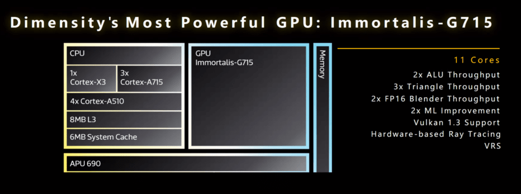 Mediatek is also the first to use the Immortalis G715 GPU, and they will probably be the only company using it until Google release the Tensor G3.