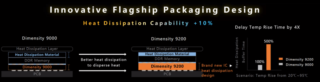 The new thermal package improves heat dissipation by 10%, which in turn delays the temperature rise time by four-fold. This should mean that phones equipped with this chipset will take much longer before they start to thermal throttle.