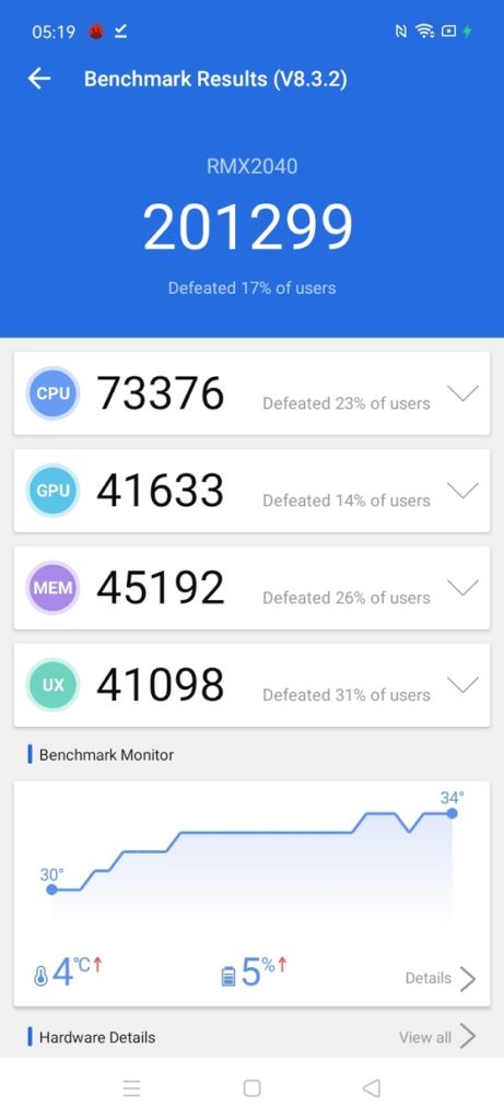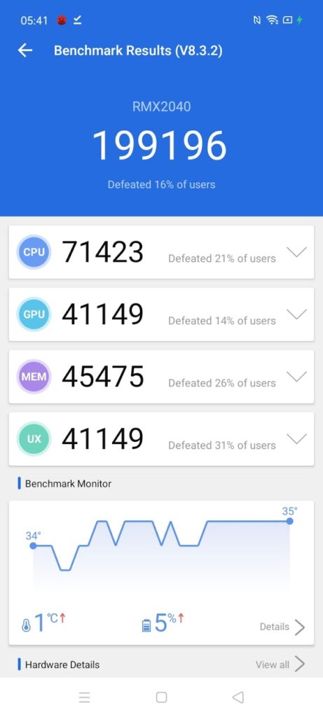 With a score of 201,299, the Realme 6i sits 7% below the Snapdragon 712 found in the Realme 5 Pro from last year, which is still on sale, and the same price.