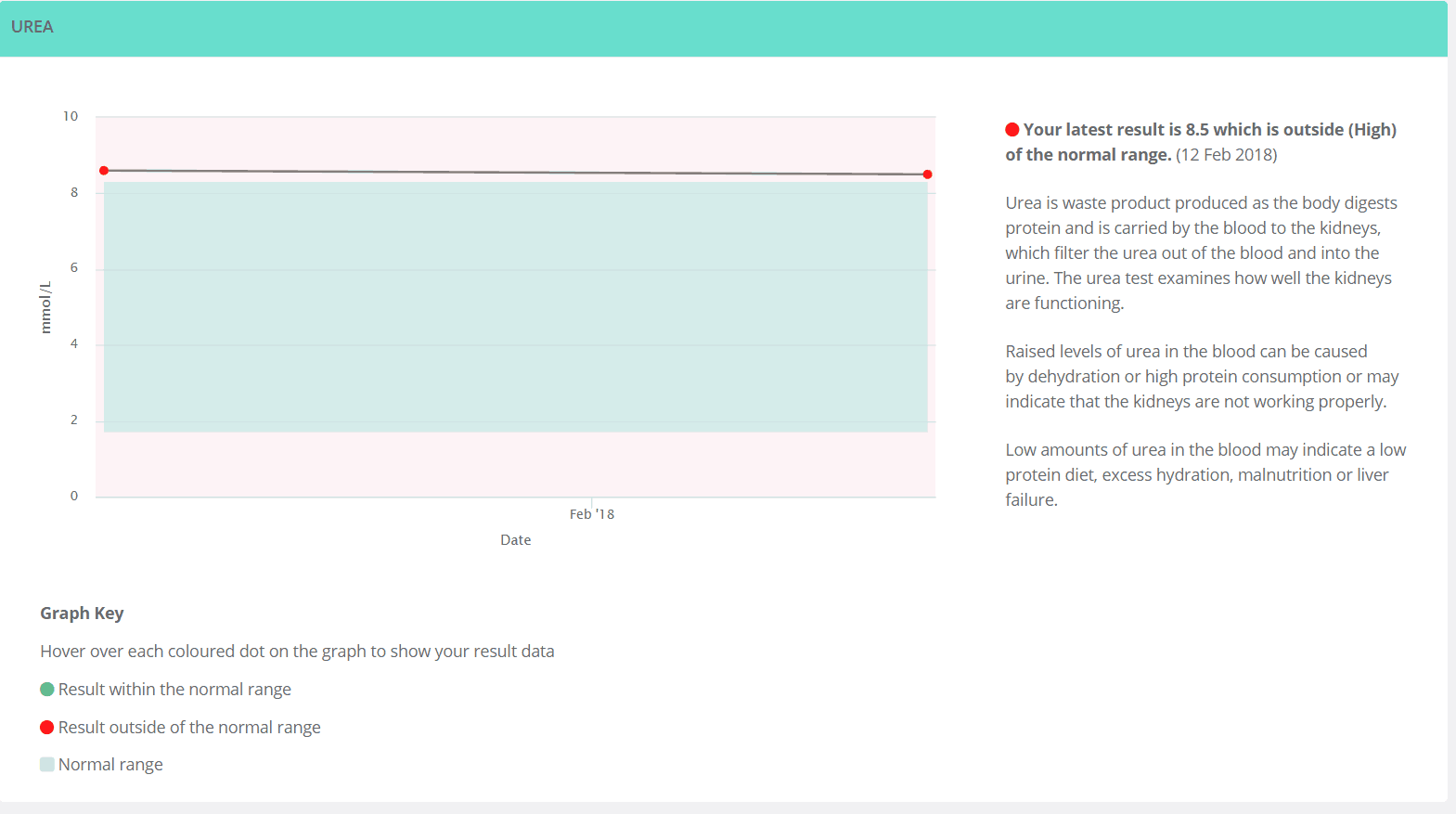 If you have had previous tests, the results will show as a graph showing which direction things are moving in, and it is quite clear if things are out of range.