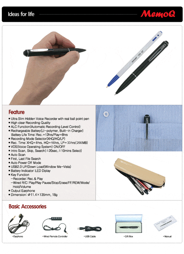 Recently Detective Store sent me the MemoQ MQ-77N digital voice recorder and pen to review.