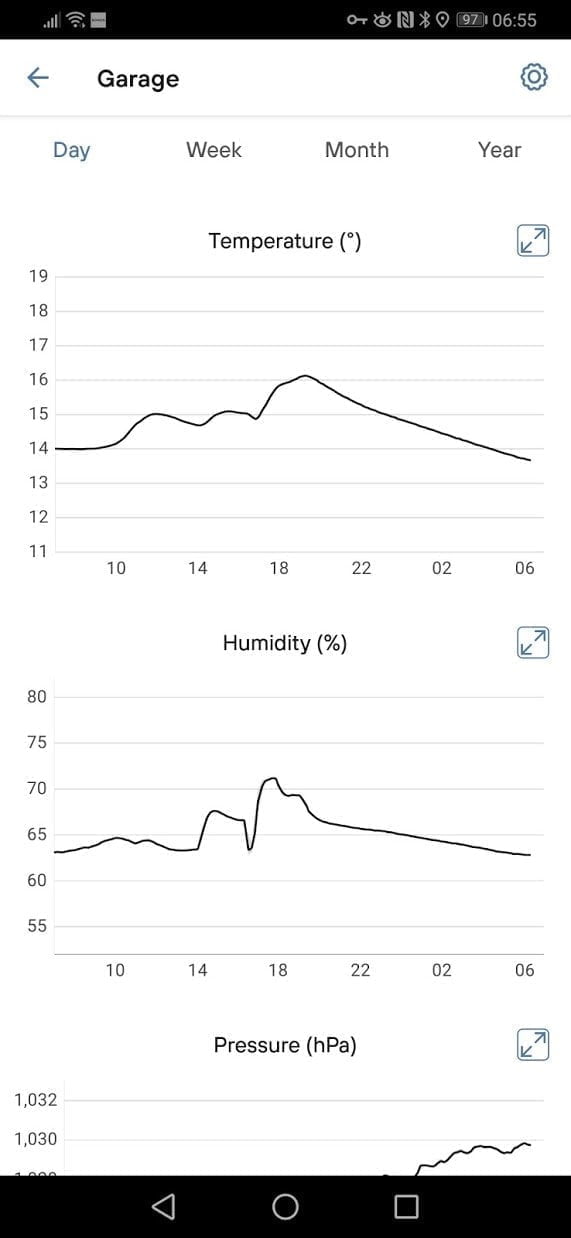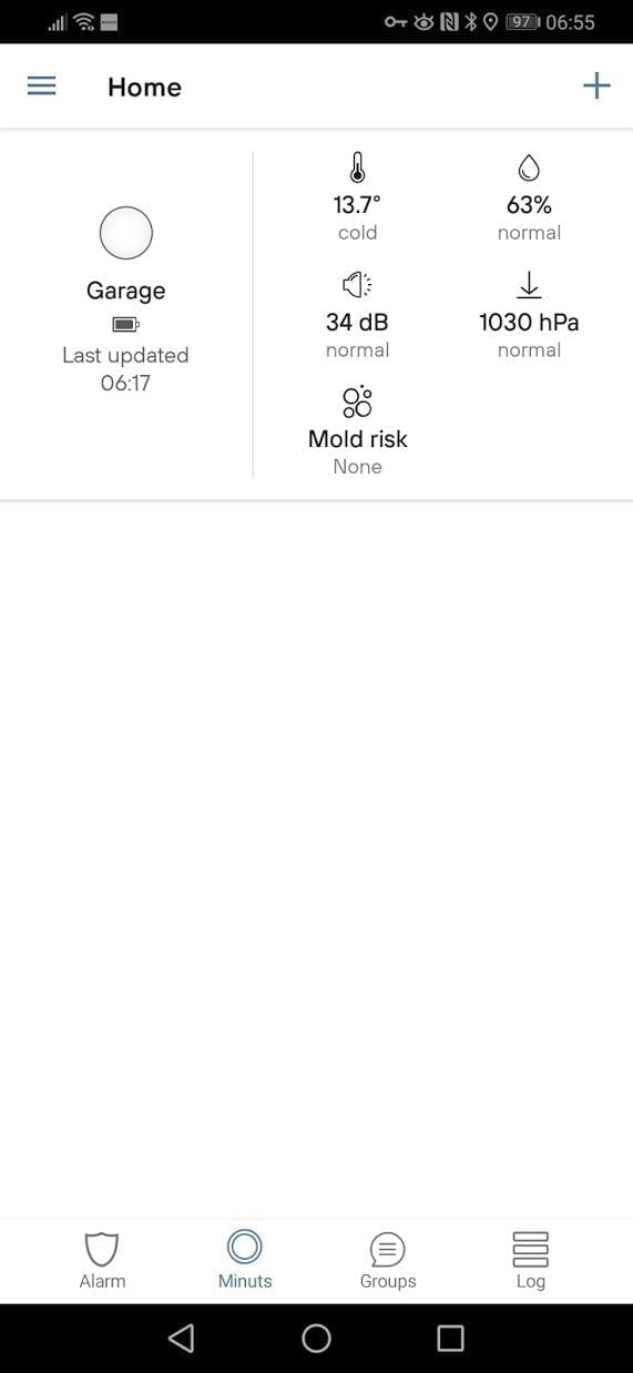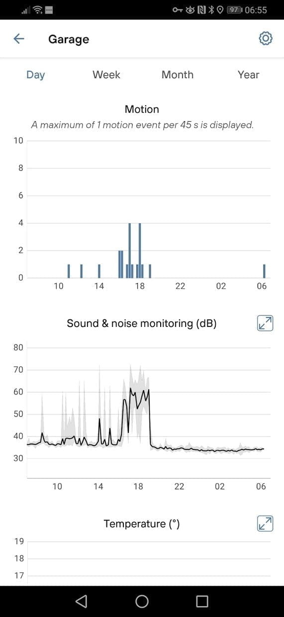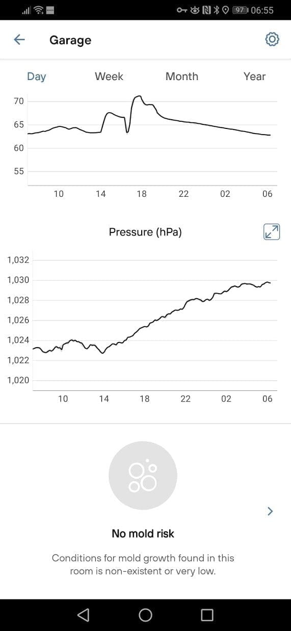When you log in to the app and select Minuts you can see the current readings from everything including temperature, humidity, sound level, pressure and the risk of mould. When you select the Minut you get a breakdown each stat over the past day and you can extend this up to 90 days with the free plan. So you can get a good overview of what is going on in the room it is located, for example, I can see peaks and troughs in both sound and temperature when I located mine, which indicates when heating is switched on, and when I was in the room watching TV.