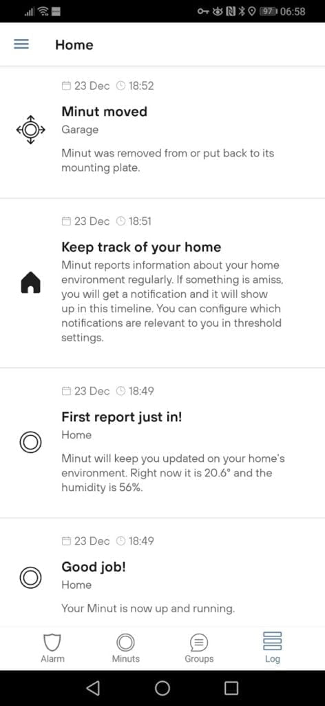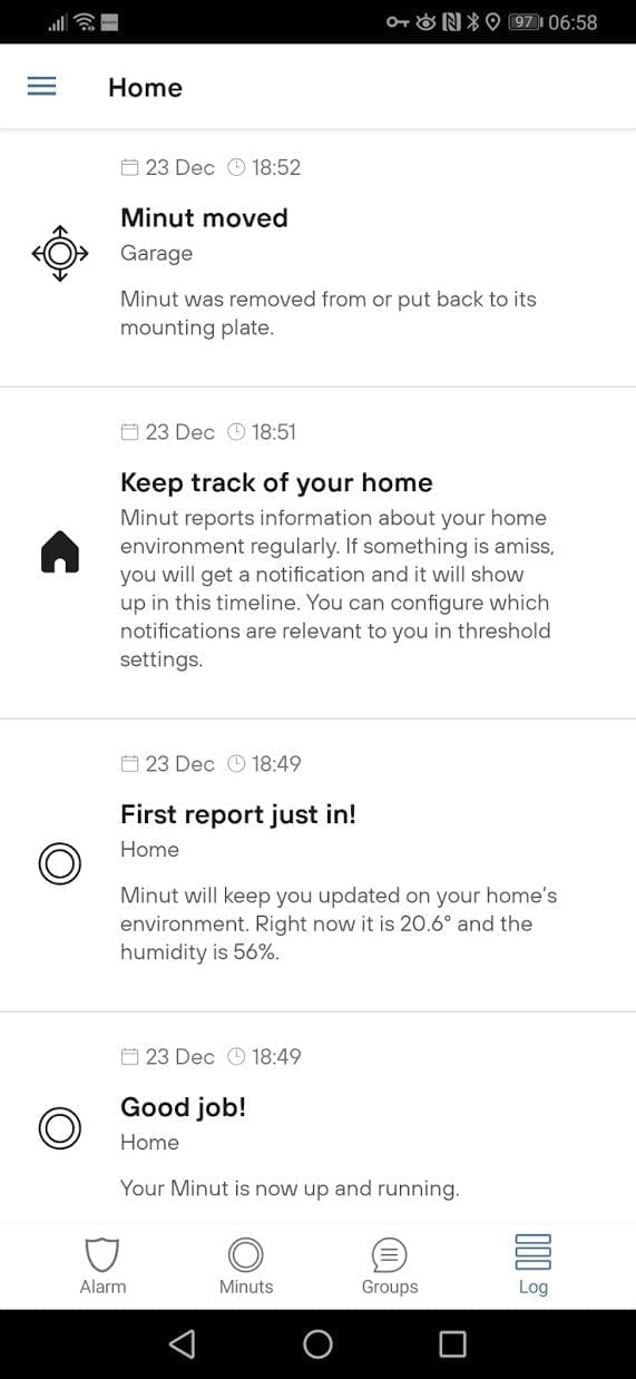 Set-up is straightforward like many devices nowadays, this relies on a Bluetooth connection to auto-connect to the default Wi-Fi then pass over your home SSID credentials. You will need to download the app and register for it then select Minuts on the bottom panel and add a new Minut. You can repeat this procedure as for as many Minuts as you need to secure your home.