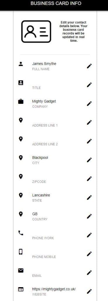 However, that link integrates with the Mobilo database, and the VCF file is dynamically generated. This then allows you to update your details as often as you like.