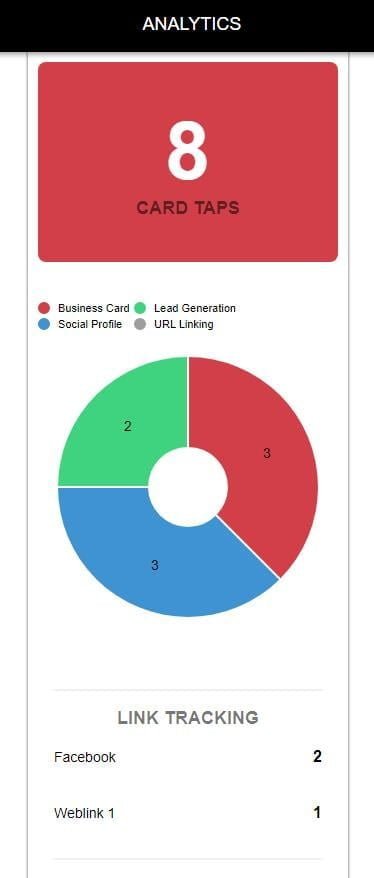 Then within the analytics, you not only see the card taps but link tracking data. So you know if someone clicked on a Facebook link. You can also use your website address in the link of links, and this will have a UTM_Source tag attached to it so you can see in Google analytics if anyone has visited your site via the link.