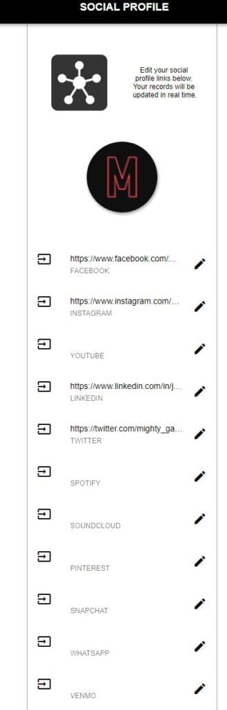 I actually think he social media profile option is superior to linking out to the VCF file. With this option, you load up a web page hosted by Mobilo which then shows you details including social media links, then also a link to the business card file.
