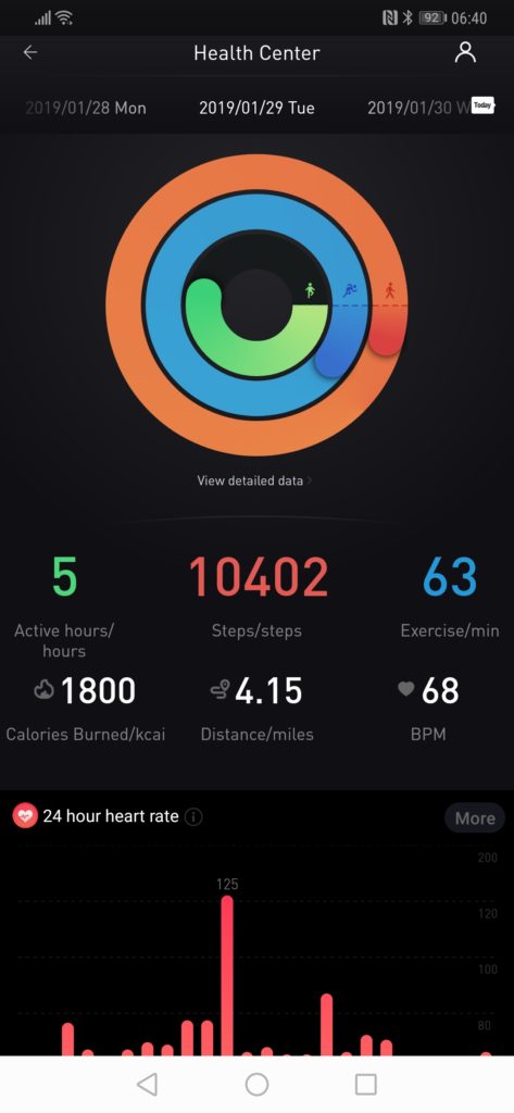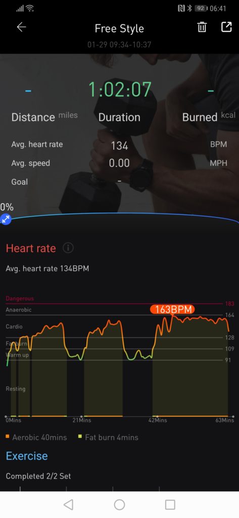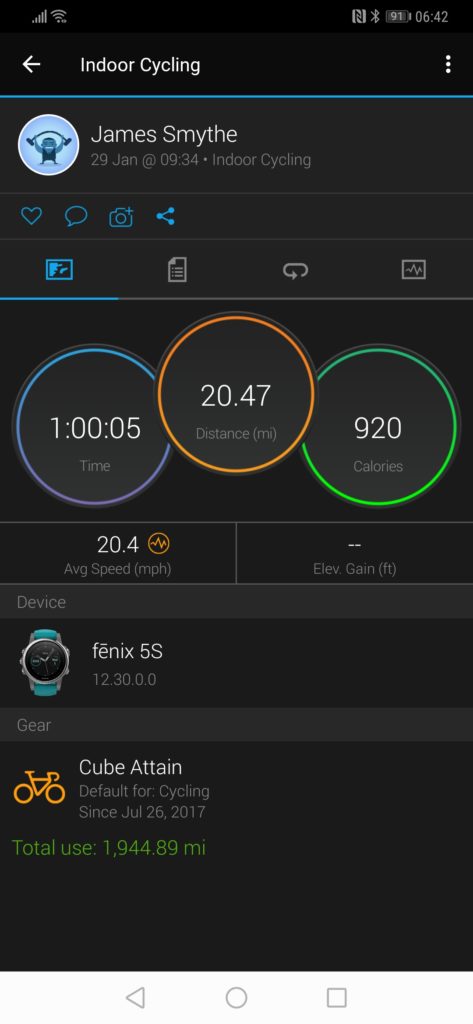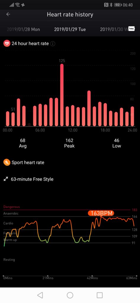My initial results with fitness tracking have been quite poor. All wrist based optical HRM is quite poor dependant on your activity, and I have found this to be worse than usual. It suffers similar issues to Garmin, for gym workouts and bike rides it struggles to lock on to a heart rate for the first few minutes, resulting in 10 minutes of useless data. Again, similar to Garmin and Suunto you can improve this by adjusting the position, I find wearing the sensor on the inside of my wrist, relatively tight, and a little higher up is the best. This reduces movement and avoids hair getting in the way.