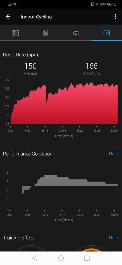 With Garmin, I find that once it gets a heart rate reading it is quite accurate, it’s never as good as a chest or upper arm sensor but it is good enough. With this, I found it had issues with all my attempts at tracking. With one Zwift session, it wouldn’t go above 135bpm. Another, once it picked up my heart rate properly it looked like it was doing OK but regularly had dropouts causing my average heart rate to be 135bpm vs 150bpm on the Garmin.