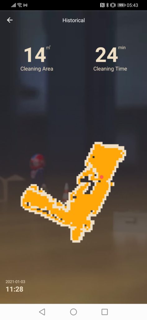 Using the cleaning report, you can see what parts of your room have been cleaned and how long it has cleaned it for. So it tells me it has cleaned 15m2 in less than 30 minutes.