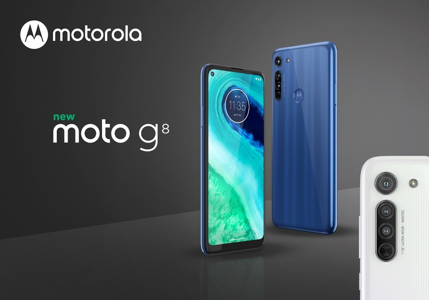Capture the perfect shot no matter where you are or when you’re taking photos thanks to the versatile AI camera system on the brand new moto g8. Take sharp photos even in low light using the 16MP fast-focusing main camera. For expansive panoramic photos or times when you want to squeeze all the action at a sporting event into one shot, you can fit 4x more in your frame using the ultra-wide angle lens¹. And the dedicated Macro Vision camera gets you 5x closer to your subject than a normal lens for incredible close ups where details make all the difference.