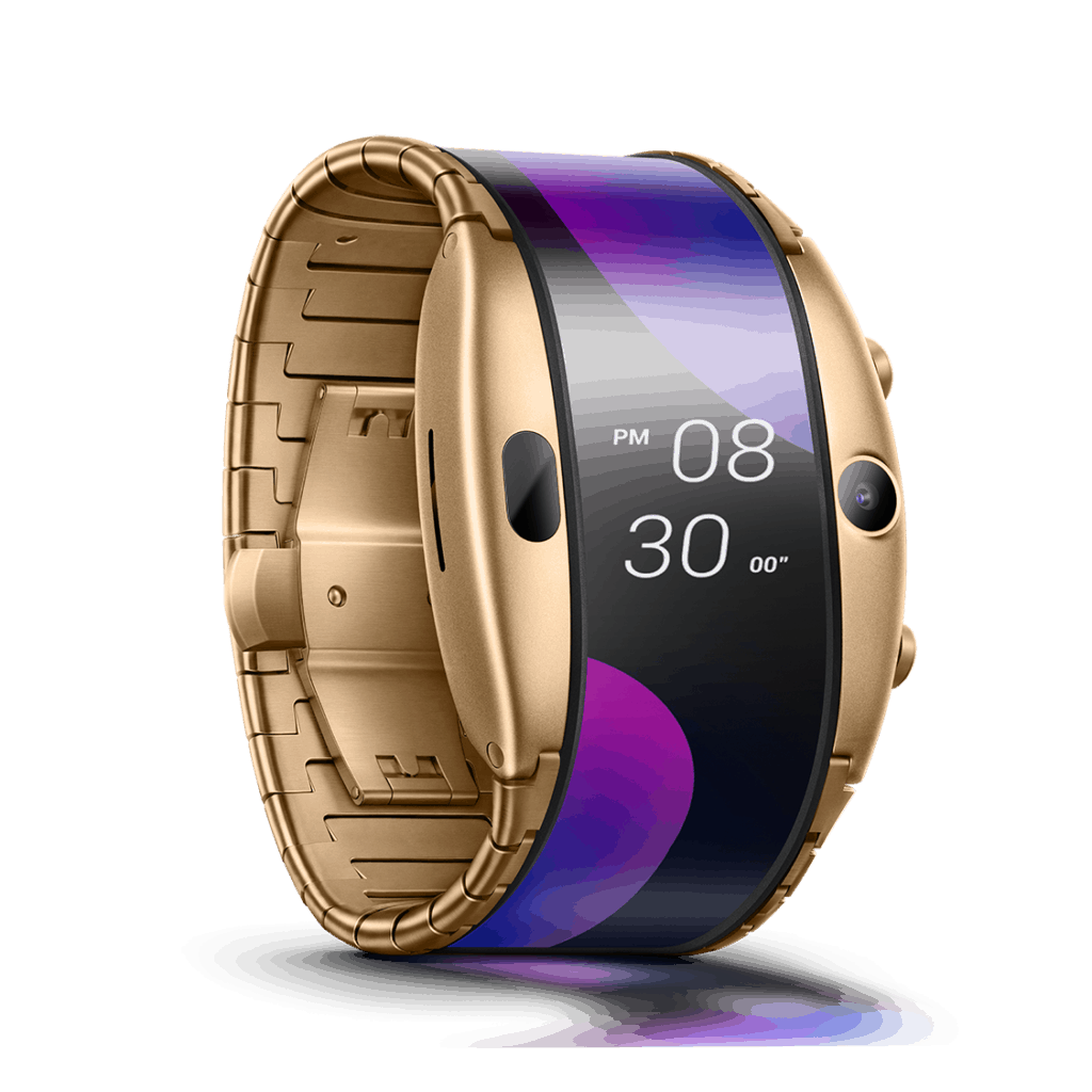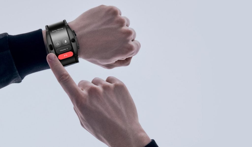The other concept worked more like a foldable tablet, with the screen folding in on itself and no proper display on the outside, instead LEDs to display the time, and I assume for notifications.