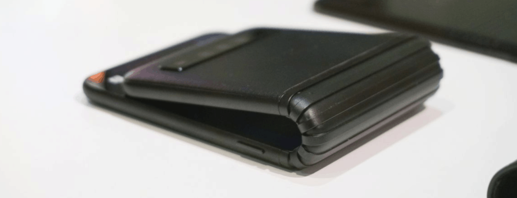 Now for some of the more wacky options. TCL the company behind the low-cost Alcatel phones also had their own affordable phones on display, these are all prototypes with a launch set to at least 2020. That’s a good thing because some of the designs are bad. In particular one of the phones with their dragon hinge folds in half light a stack of cash, leaving a large gap.