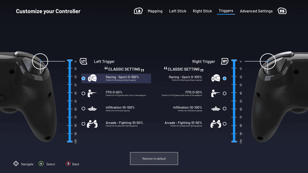 PC gamers get additional functionality via the windows app, allowing them to customise various aspects of it. This including re-mapping your buttons which can be quite handy for things like emulators. You can then tweak the response curve of both the D-pads and the trigger sensitivity