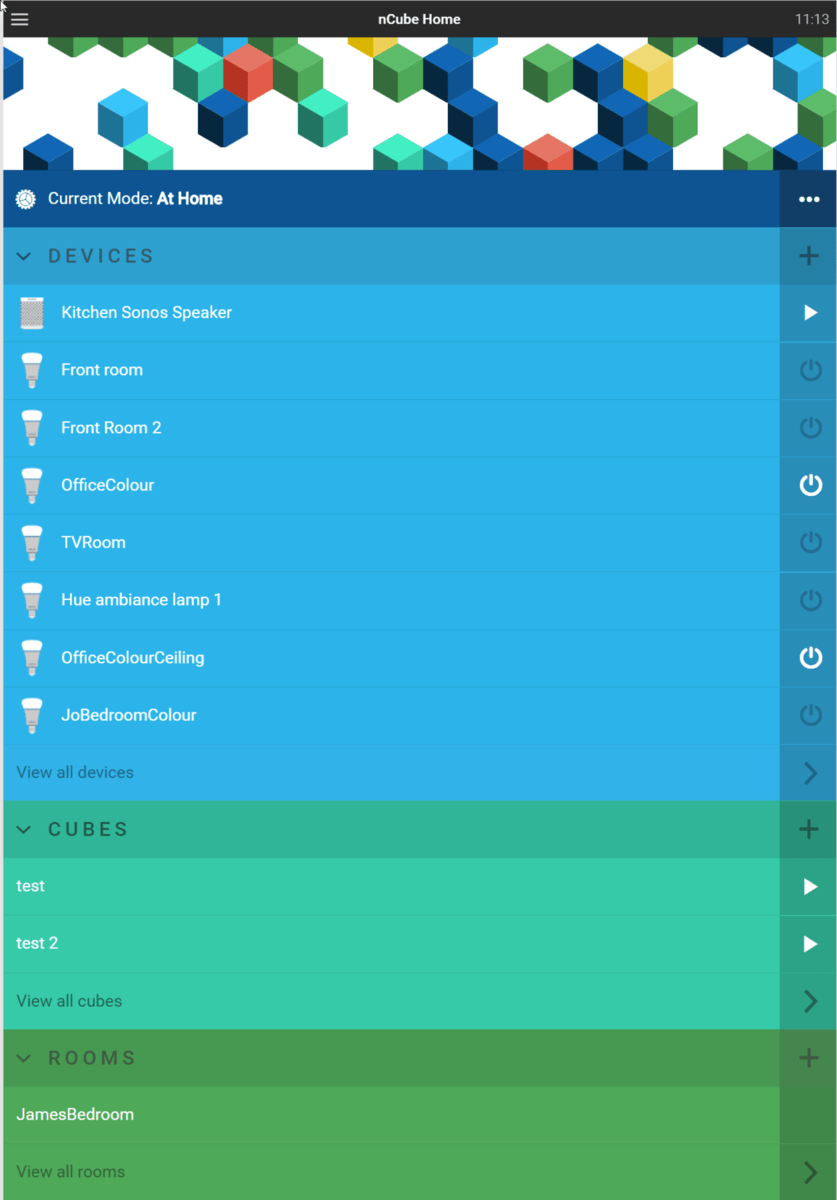 You basically have 3 sections, 1 for your devices, 1 for your rooms, and one for something called Cubes, which are basically the main logic controls for the entire system.