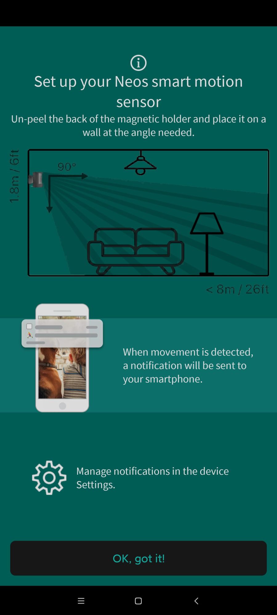 When movement is detected, you’ll receive notifications to your Neos SmartHome app. So you can make sure your little ones aren’t wandering up or down the stairs or sneaking into your home office.