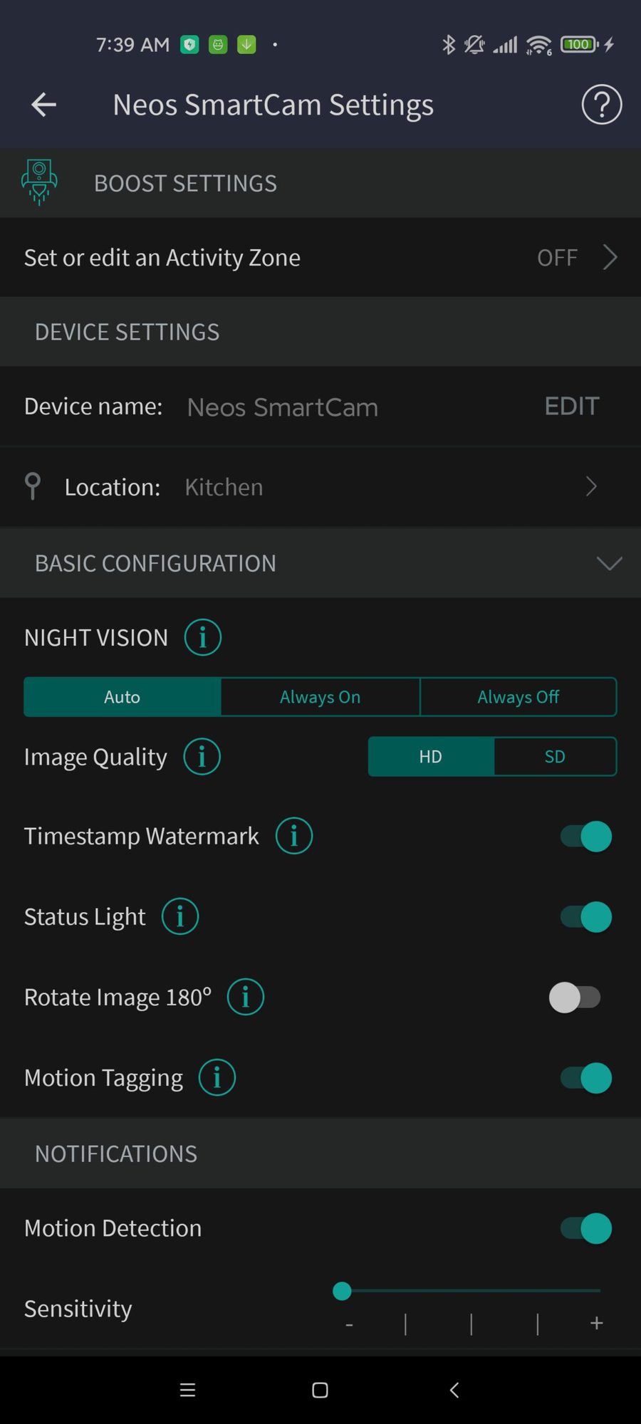 You can then optionally pay for Neos Boost which bumps up the recordings to 1 minute and reduces the cooldown time between clips from 5 minutes to 1 minute. You then gain access to activity zones and security scheduling.