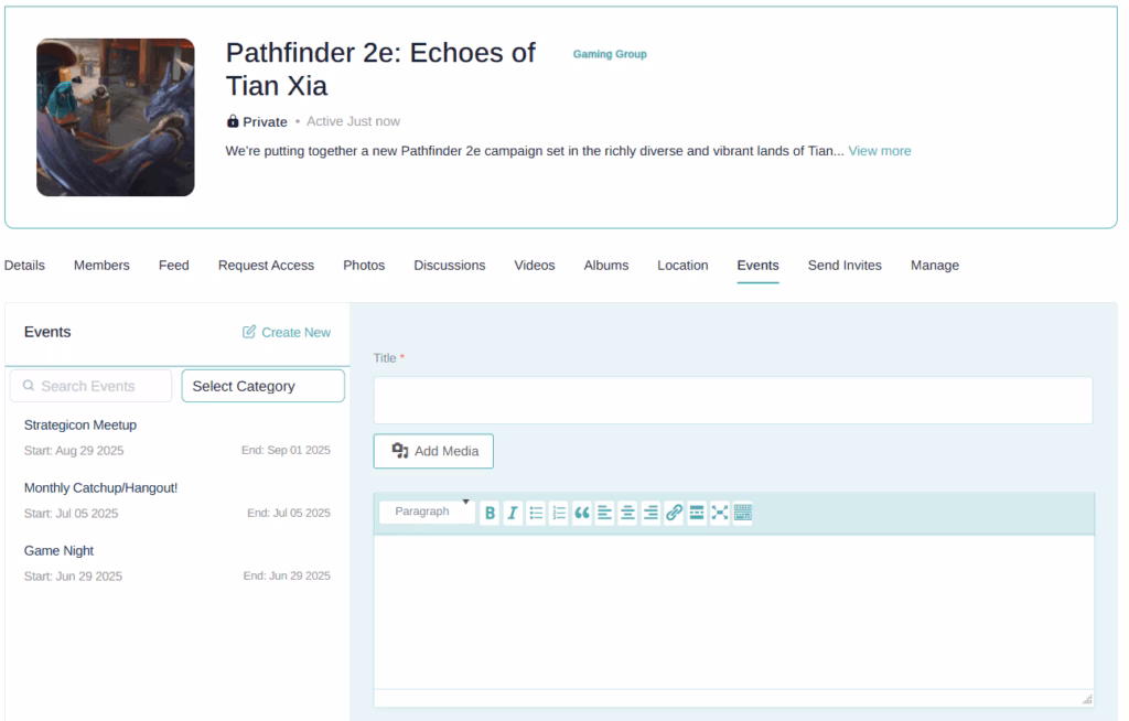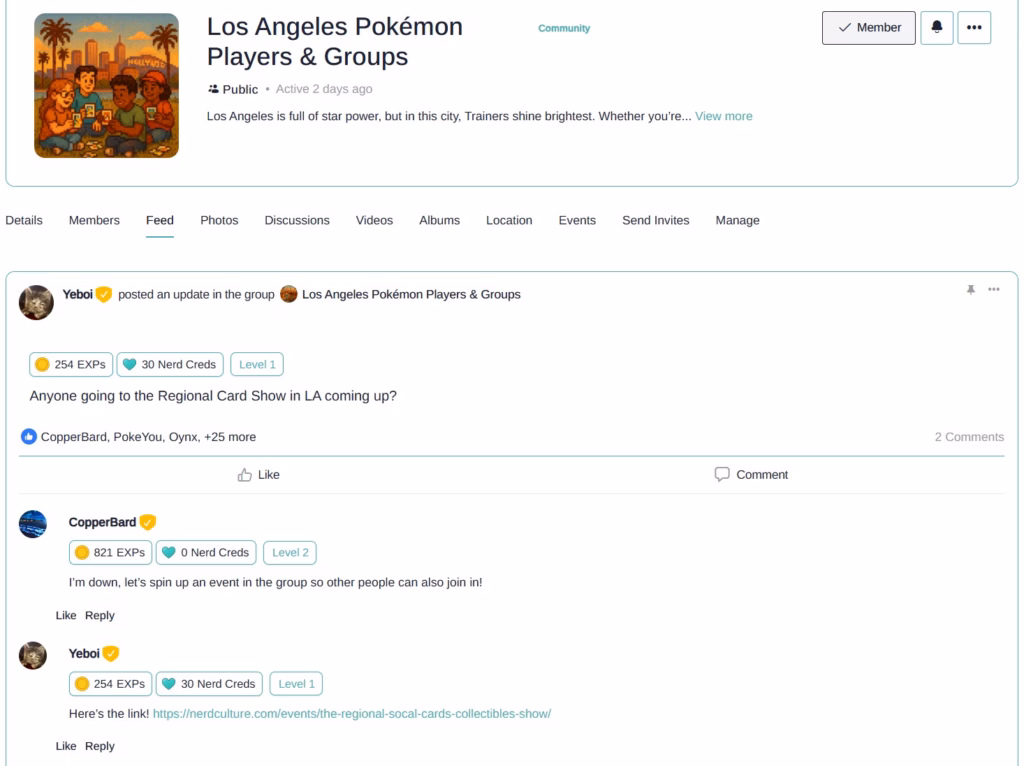 Through meetups and event management features, communities can head offline for game nights, cosplay shows, and panel meetups with smart tools that sync to calendars, optimize group visibility, and notify members intuitively.