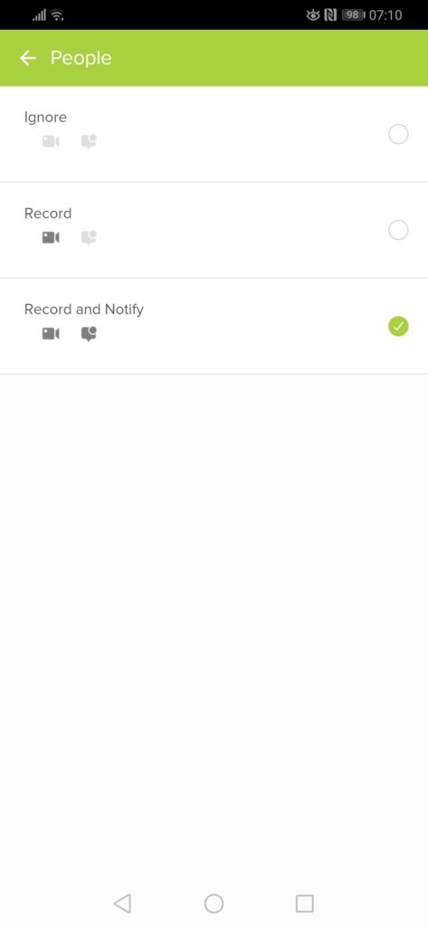 You also have the option to set up different recording and notification settings based on objects. By default, it records every motion, but only notifies for people