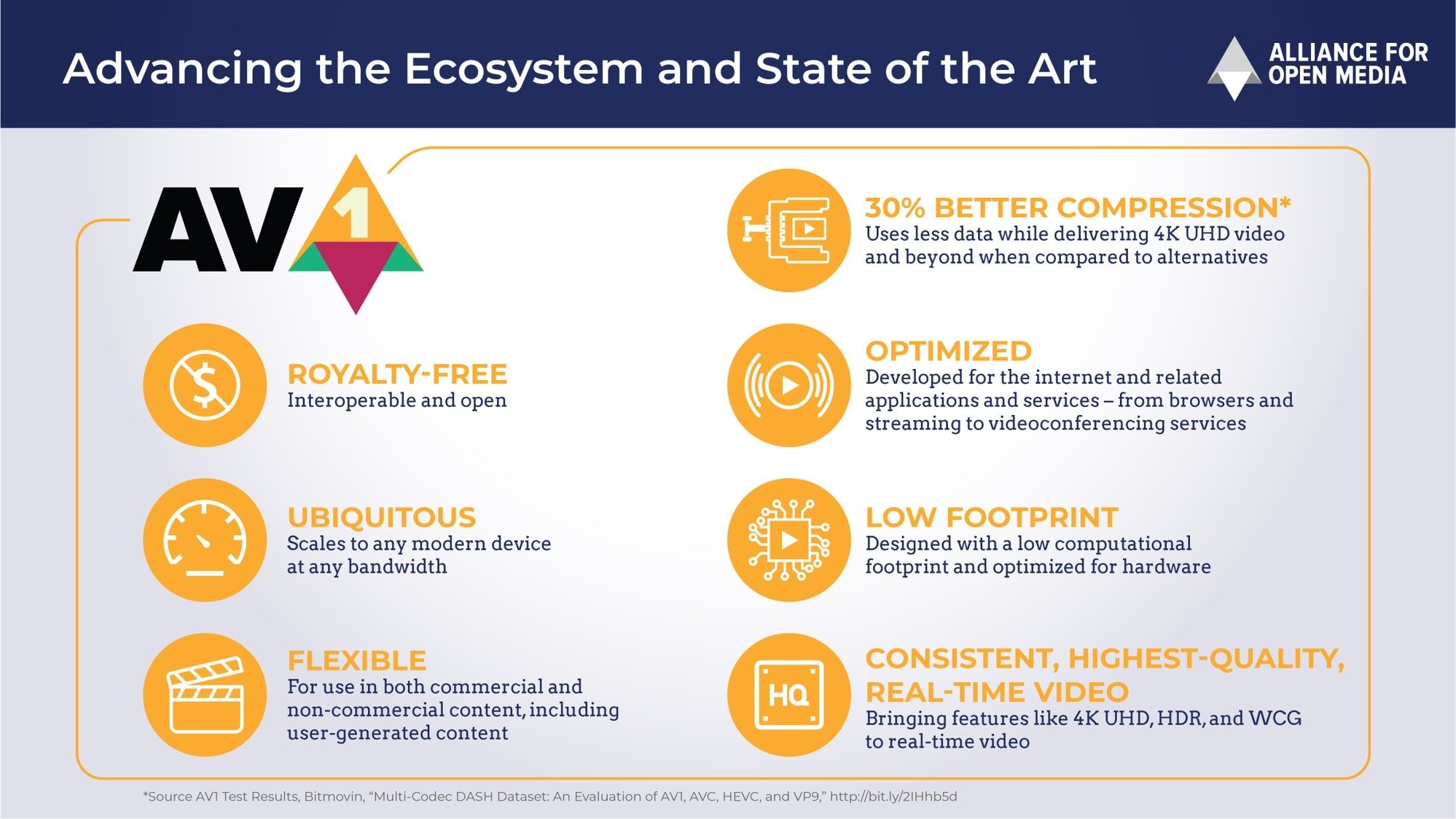 AV1 is a newer codec which is a royalty-free open codec, so free for anyone to use and it is was backed with some of the biggest names in the business including Amazon, Apple, Google, Microsoft, Intel, Mozilla, Facebook, Cisco, Netflix, Samsung, Vimeo, MediaTek and more.