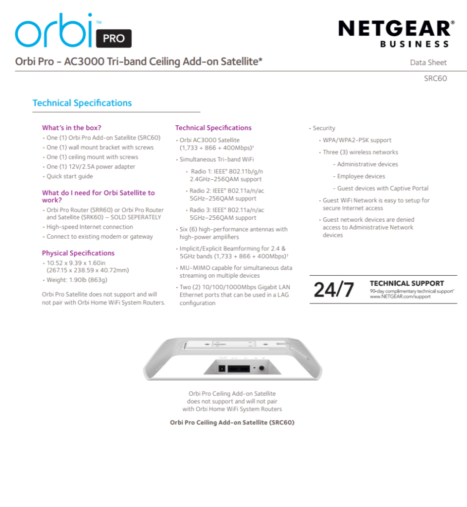 NETGEAR Business Orbi Pro Mesh Wi-Fi Ceiling Satellite