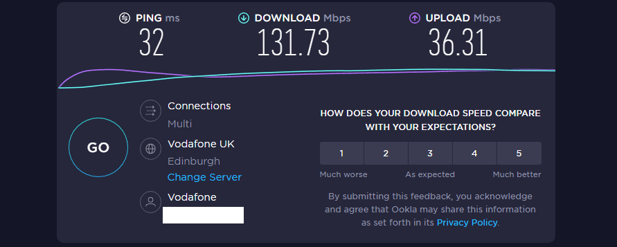 This result is about the same as what my mobile connected at directly. The download speed is certainly impressive when you look at VDSL solutions but the high ping and low upload are disappointing when compared to 4G Vodafone. If you have multiple 5G options in your area it would be best to experiment with which is best.