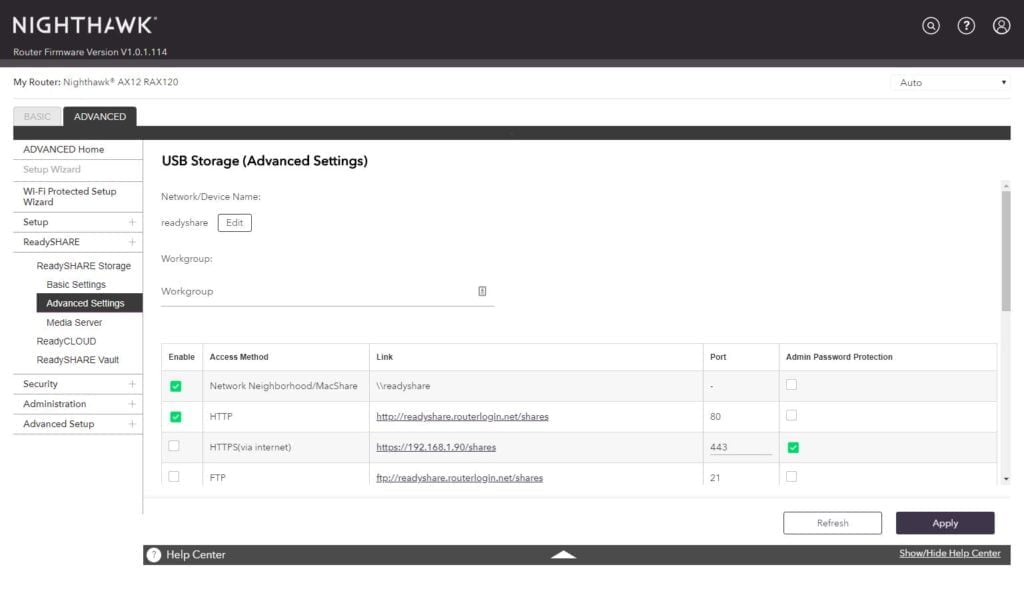 There is also basic NAS features via ReadySHARE which includes a DLNA media server, remote access via ReadCLOUD and local backups via ReadySHARE Vault
