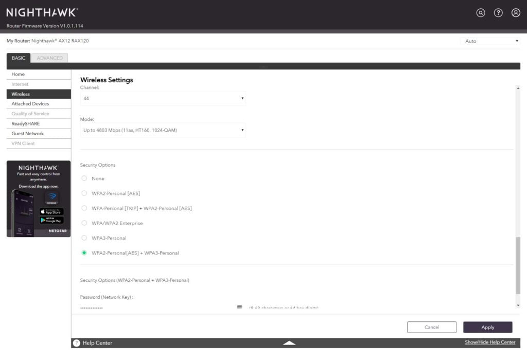 Most Wi-Fi 6 devices support WPA3, the new more secure security standard that will replace WPA2. Most routers don’t have the option to use it yet though, this is the first router that I have seen that does. The problem is, most clients don’t support WPA3, but Netgear allows you to run WPA2 and WPA3 in unison. Due to the lack of compatible devices, you may as well run it in just WPA2 for now.