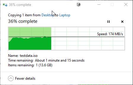 With everything working, this comfortably took the crown for the fastest Wi-Fi I have experienced with real-life transfer speeds well over 150MB/s topping out at about 175MB/s.
