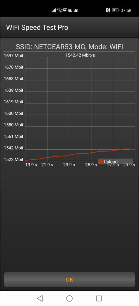 Using the WiFi Speed Test Pro app, this allows the P40 Pro to achieve transfer speeds of consistantly over 1500Mbps.