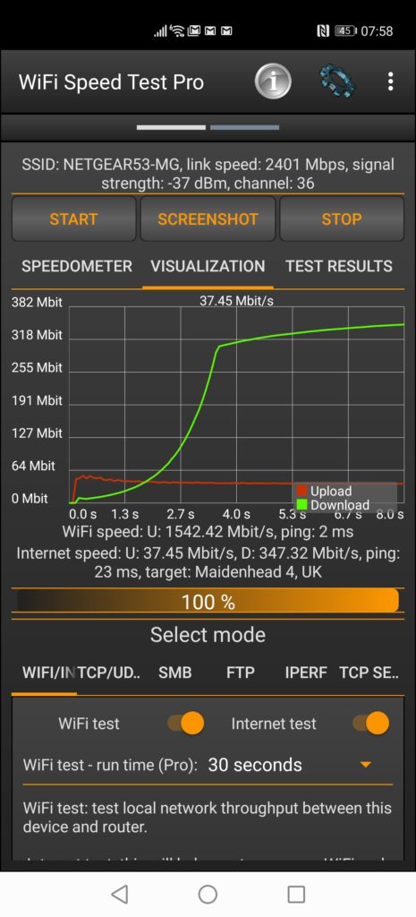This, therefore, is allowing to establish a connection rate of 2 to 2.4Gbps consistently on my laptop, PC and also the Huawei P40 Pro. Furthermore, when retesting the speeds using the P40 Pro, I was able to achieve transfer speeds of 1.5Gbps which are the highest speeds I have ever seen on a mobile phone.
