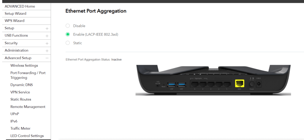 The two main settings that make this different from other routers are the Wi-Fi 6 options and link aggregation