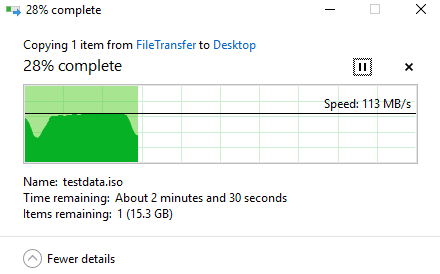 Transferring the ISO file capped out the gigabit connection with speeds peaking 115MB/s in both the room where the router was located and in my living room. I experienced this with all setup variations.