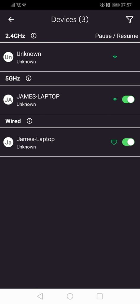The app is suitable for day to day management, and it is more convenient than getting your laptop out to make simple changes. You can view the devices on the network, connecting or disconnecting them if required, alter your WiFi settings and enable the guest network. There is also a traffic meter option which may be useful to identify network issues.