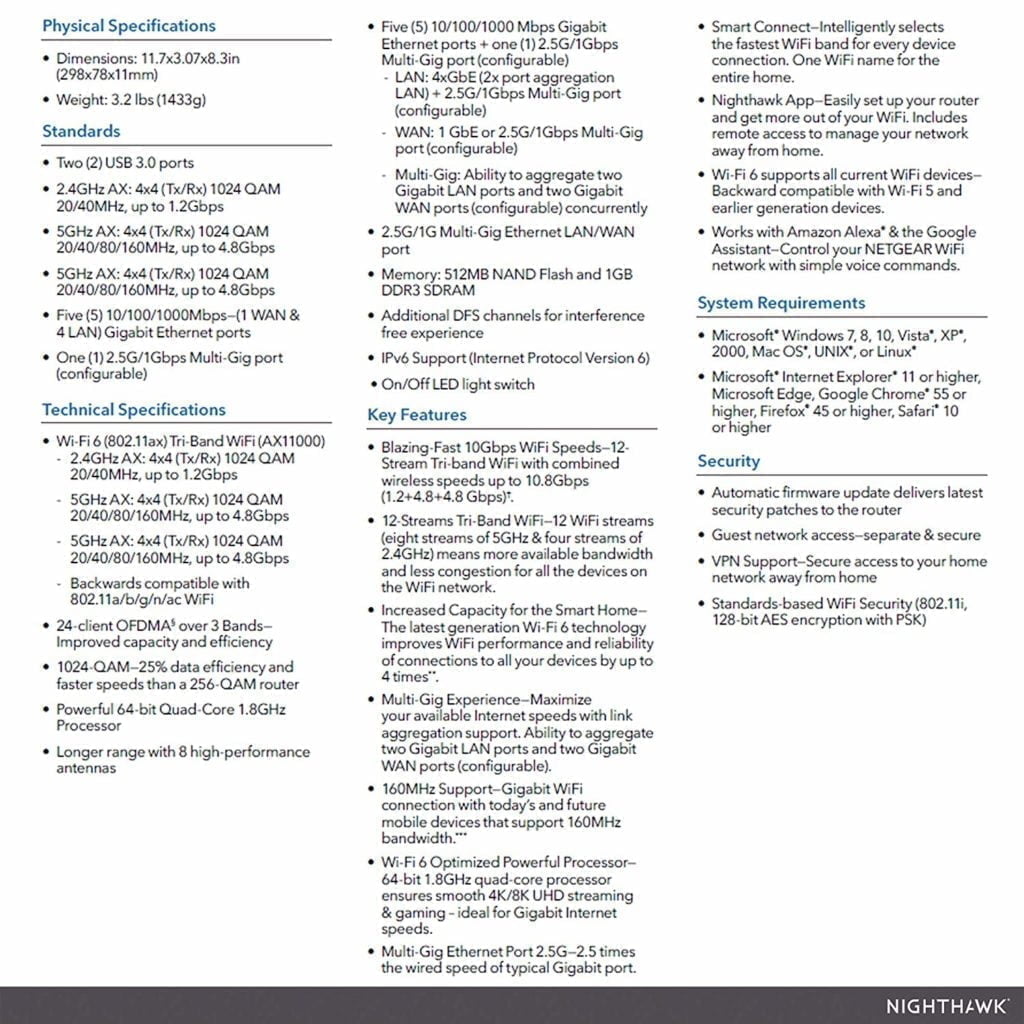 The Nighthawk Tri-band AX12 includes the following key specs and features: