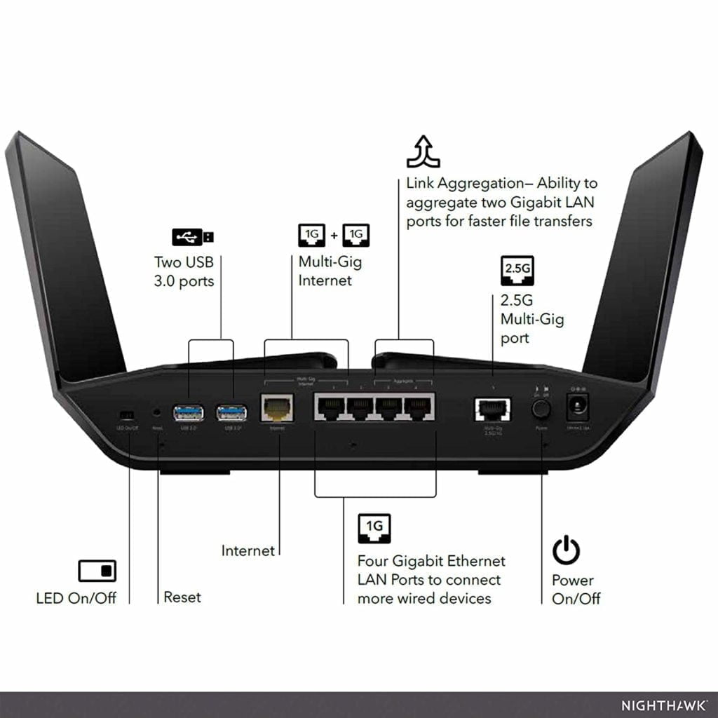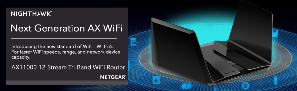 The Nighthawk Tri-band AX12 sets you up for faster speeds and latest Wi-Fi technology in the foreseeable future as computers, mobile and IoT devices adopt the latest Wi-Fi 6 technology, while continuing to support all of your existing Wi-Fi devices. The Nighthawk Tri-band AX12 can deliver more than one Gigabit of throughput to mobile devices that support 160MHz bandwidth.