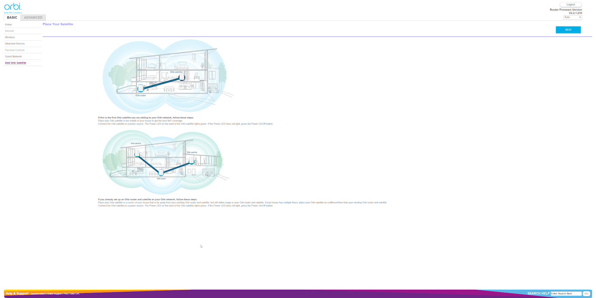 - Blue: Connection between Orbi Satellite and Orbi Router is good.