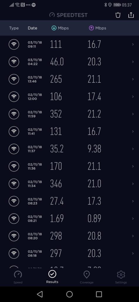 With this system after enough tinkering, albeit less work than my existing set-up I have managed to get solid Wi-Fi performance throughout the home as well as the garden and garage with no black spots at all, and much quicker handoff between devices. In particular, there is nowhere in my house that receives less than 100Mbps and in the most important rooms, I get the full speed from Virgin which is typically over 300Mbps.