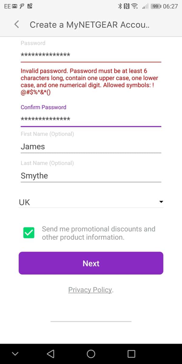 The Insight app uses a MyNETGEAR login, so if you already have Arlo or other products, the login is the same. If you don’t you will be required to sign up; they have very annoying password policies which always irks me with apps.
