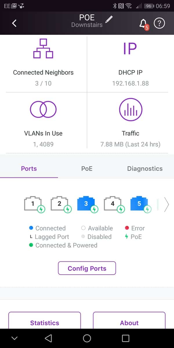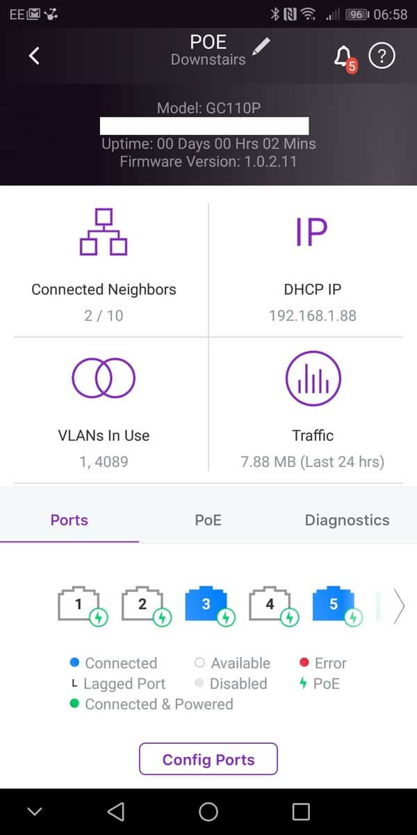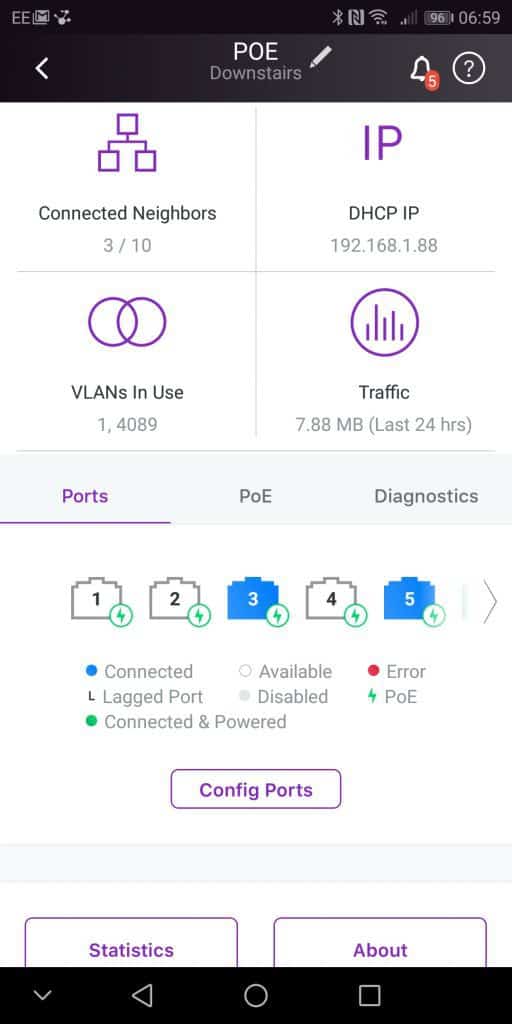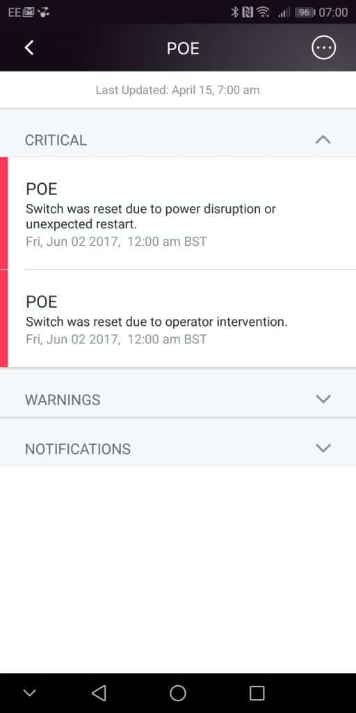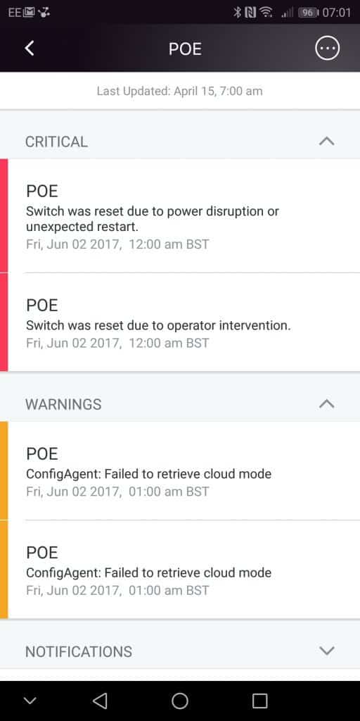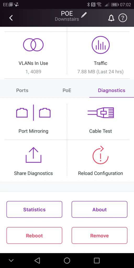 You don’t get the extensive list of options you do with the web interface, though I imagine this would get confusing. You do have access to all the essential stuff though, especially when it comes to remote support. You can manage the VLANS, see all the connected devices, configure ports, diagnose port issues and run cable tests. If the switch goes down, or just losing cloud access, you get a push notification and an email.